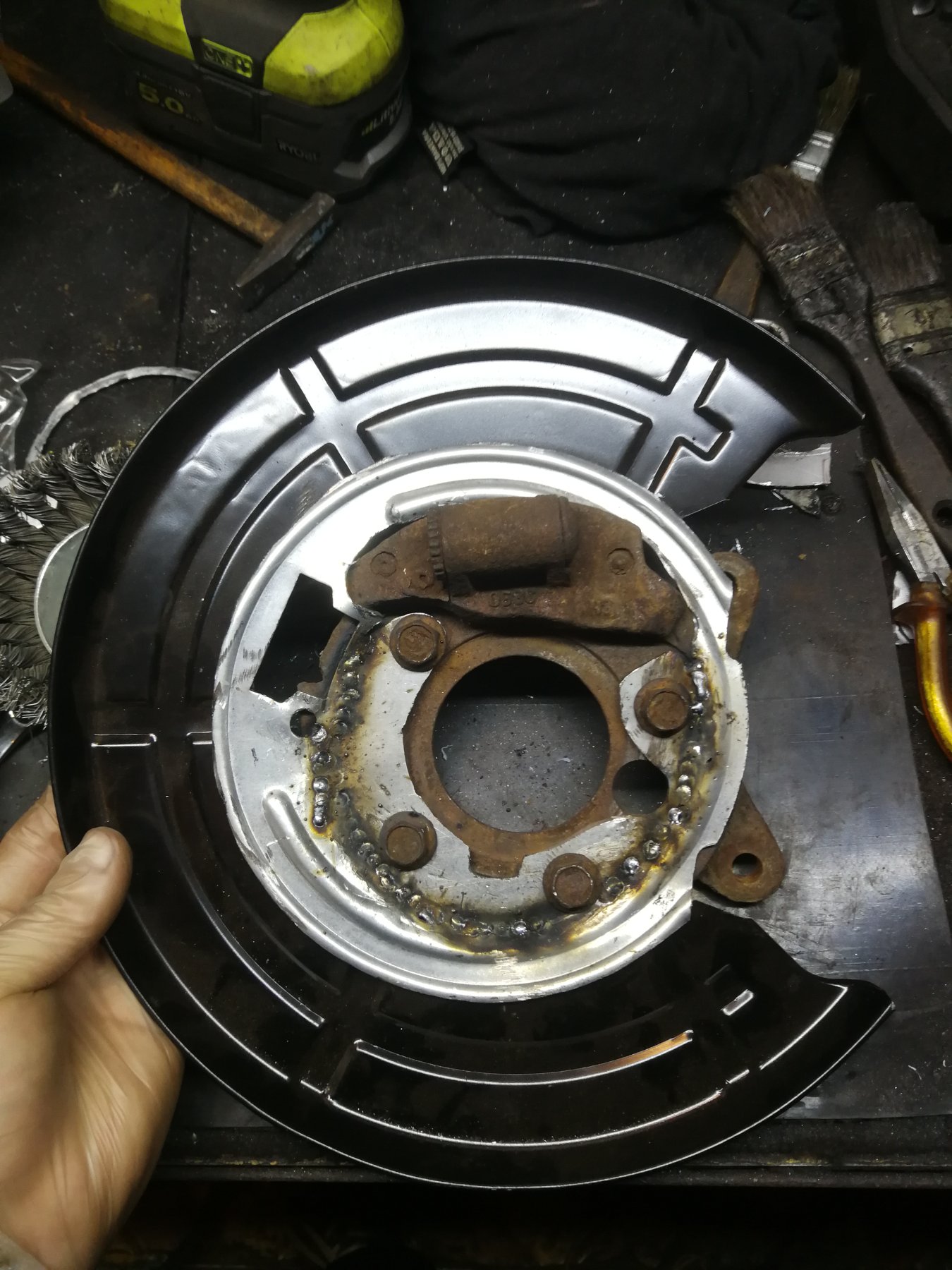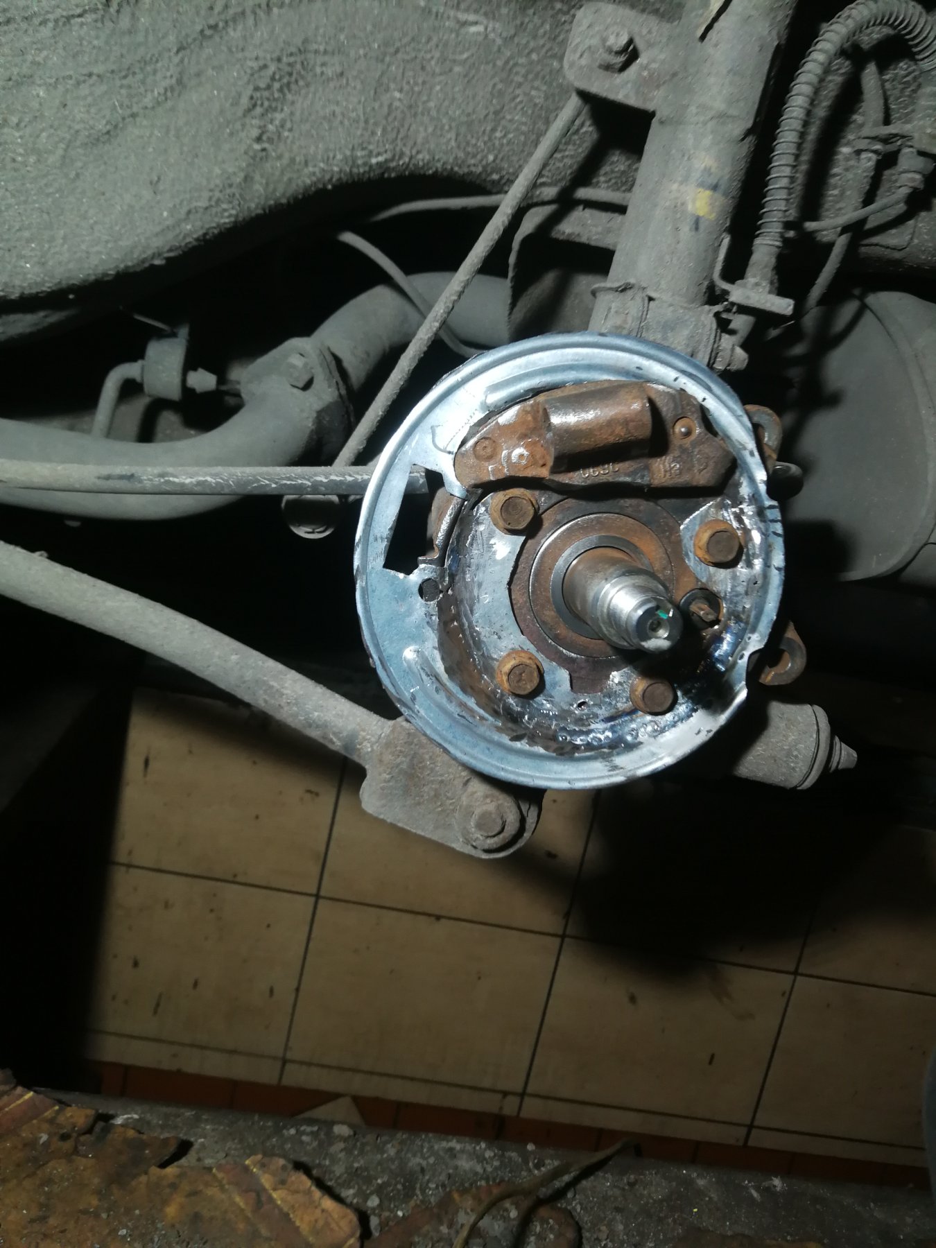 Wymieniając łożysko tył w Evandzie zauważyłem że moje tarcze kotwicze, nie wiem czy dobrze to nazywam chodzi o blachę do ktorej mocuje się okładziny ręcznego jest okropnie skorodowana, wrecz ma dziury i ledwo trzyma się kupy.